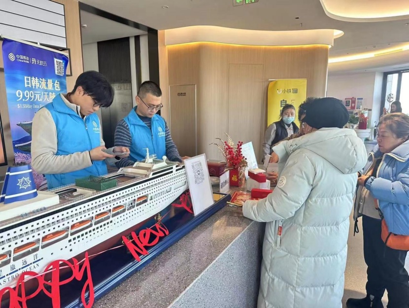除夕、初一两日,上海移动于吴淞口国际邮轮港游客服务中心开展现场服务