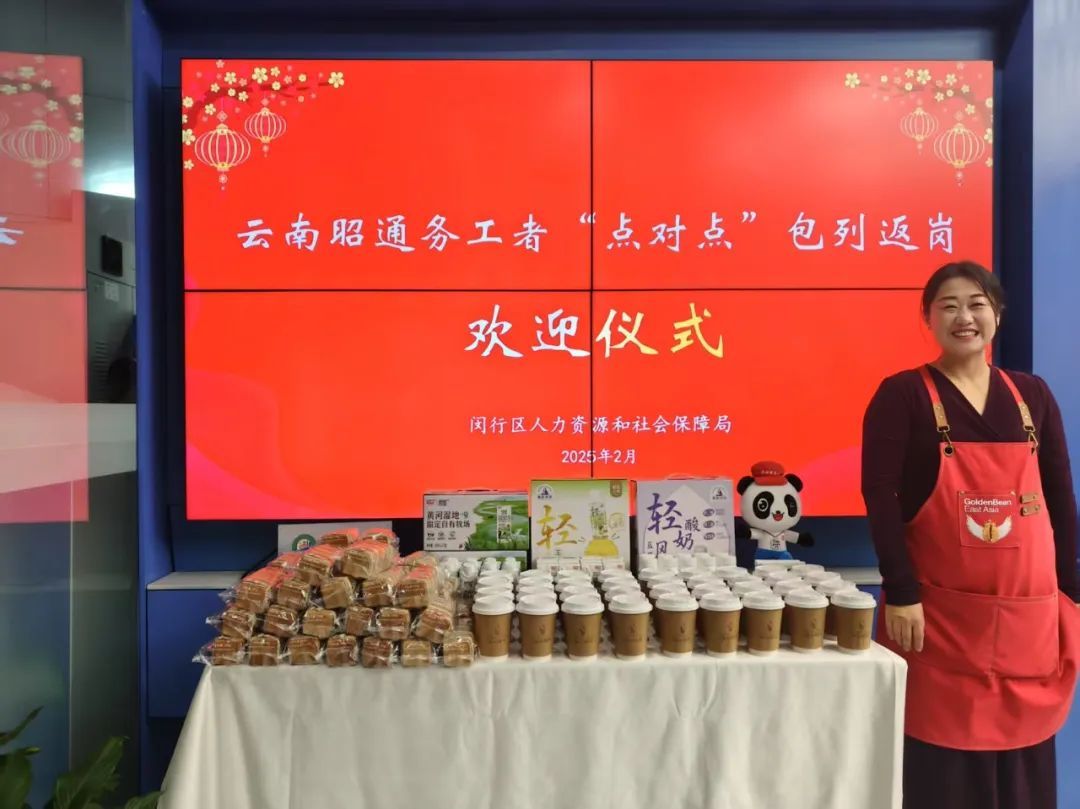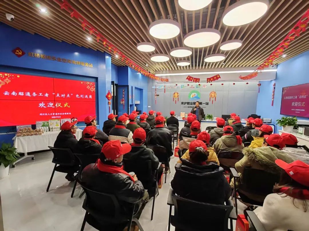 包括陈开绪夫妇在内,当天晚上,闵行迎来了春节首批“点对点”包列返岗复工的40名云南昭通籍务工人员。市、区人社部门及云南省昭通市人社局,昭通市盐津、绥江、永善、大关等四县挂职干部到站迎接,并在虹桥枢纽“来沪就业服务第一站”为返岗人员举办了一场热情的欢迎仪式,为他们送上新年第一杯咖啡、“来沪第一课”和复工礼包。