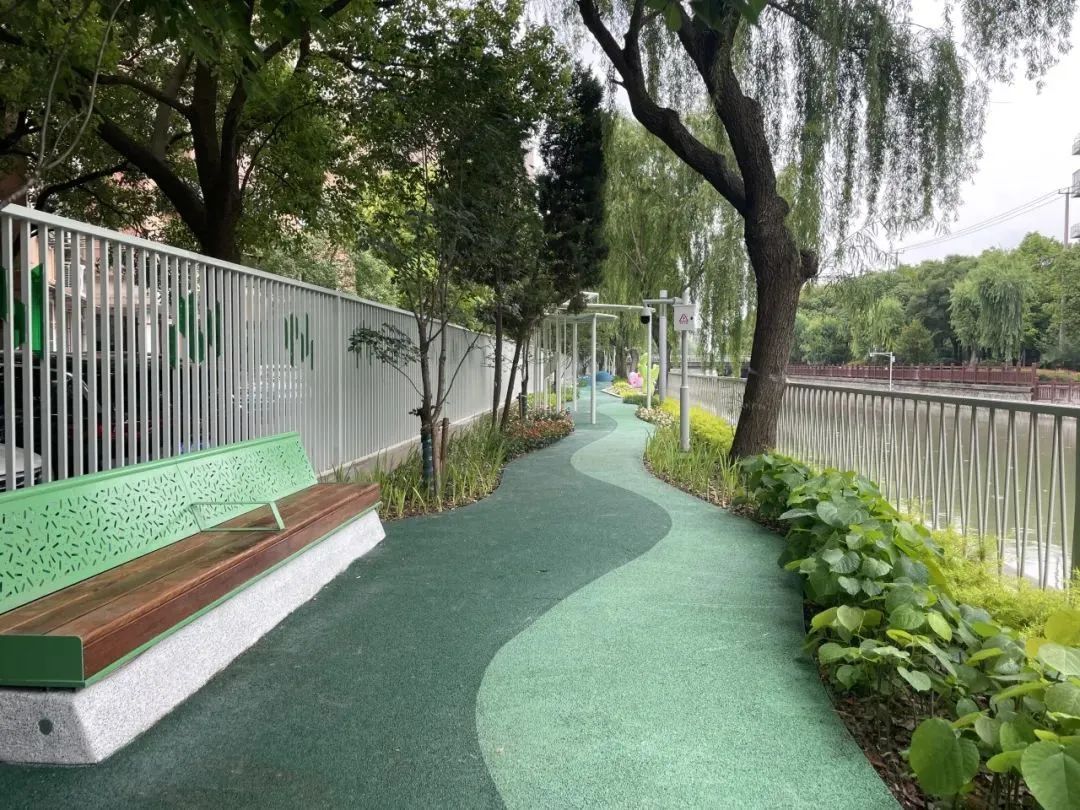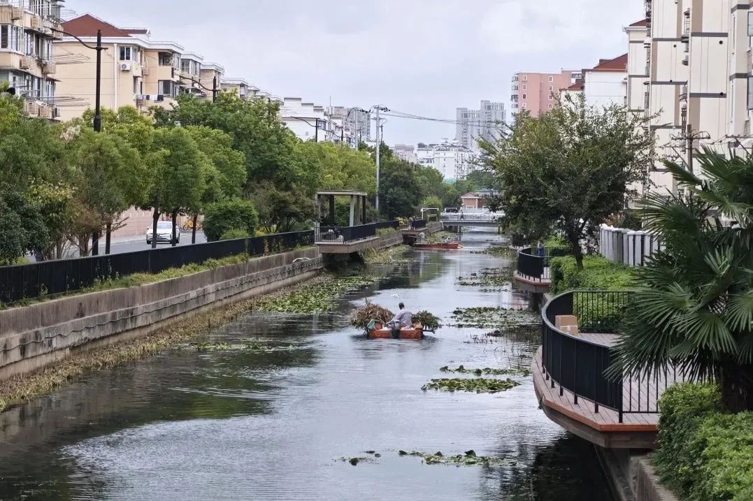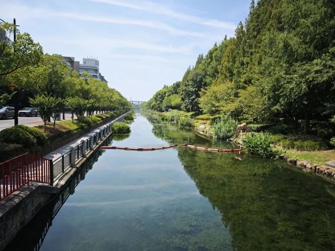 经过滨水步道贯通和生态景观提升,河道焕发出新的生机与活力。清澈的河水中,鱼儿悠然游弋,水草丰茂,呈现出鱼翔浅底、水生植物繁茂的生态美景。河岸两侧,绿树成荫,花草点缀,步道蜿蜒其间,市民们或漫步、或休憩,享受着自然与城市的和谐交融。河道治理不仅提升了水质和生态环境,更营造出一幅人与自然和谐共处的生动画面,充分展现了长宁河道的高品质和高颜值。