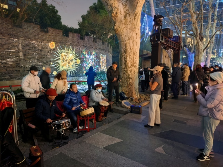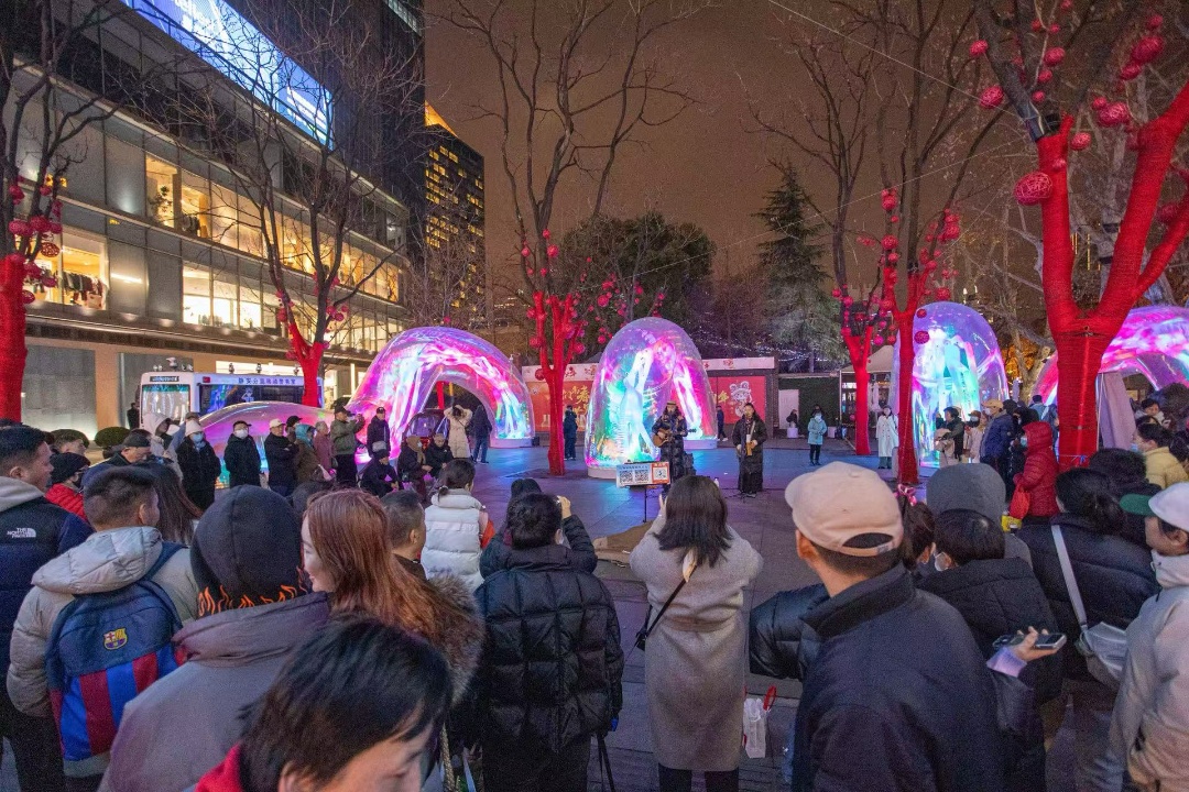 步过《金蛇万化》的 “光影艺术画廊”,伴随着市民自发的吹拉弹奏,迎面而来的是一幅和谐美好的生活画面。ai交互装置《hello,world!》向你打开一扇扇任意门,传达着一声声来自全球各地的新春祝福。