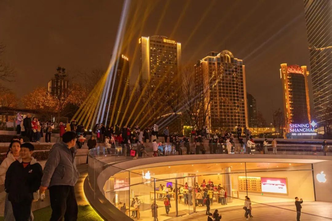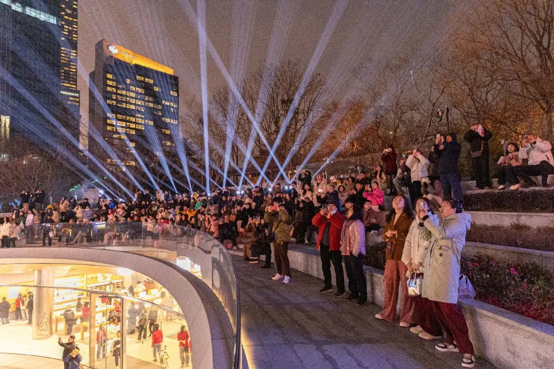 静安寺广场上,装置《光·奏》的灯光随着喜庆的新春乐曲动感变换,向市民游客演绎着为2025中国新年度身定制打造的首秀《奏春章》。静坐片刻,仰望天空,明艳的灯火正用春日之光书写着闪耀静安的未来之旅。