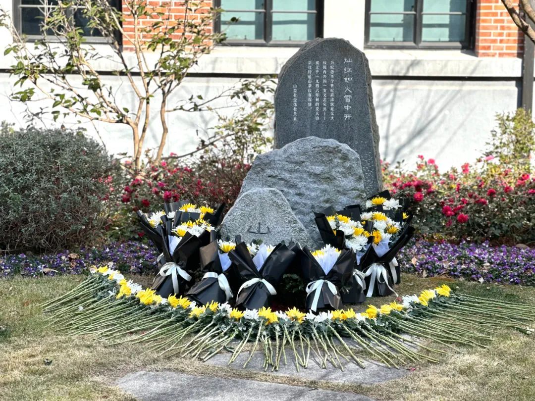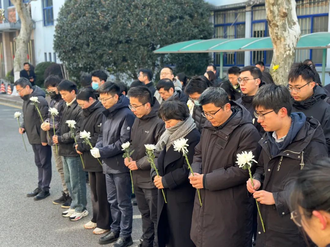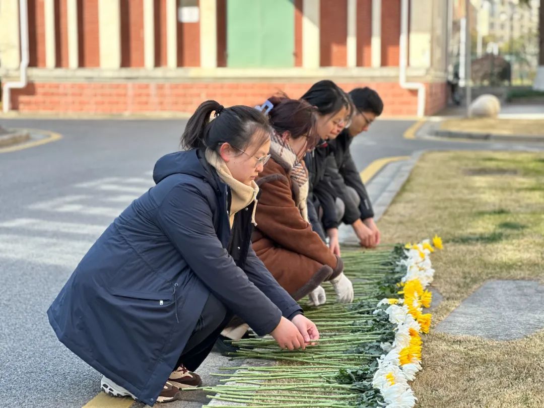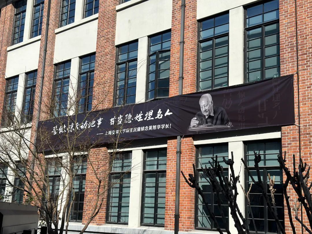 2月8日,上海交通大学徐汇校区山茶社纪念碑前,数十名师生手持鲜花,向刚刚逝世的“共和国勋章”、国家最高科学技术奖获得者,中国工程院院士黄旭华(点击查看相关报道),致以沉痛悼念和深切缅怀。教学楼上,一面印有黄老形象的横幅在阳光下格外醒目,上面还写有这位上海交大杰出校友的名言——“誓做惊天动地事,甘当隐姓埋名人”。全体人员肃立默哀、鞠躬致敬,而后分批敬献鲜花。