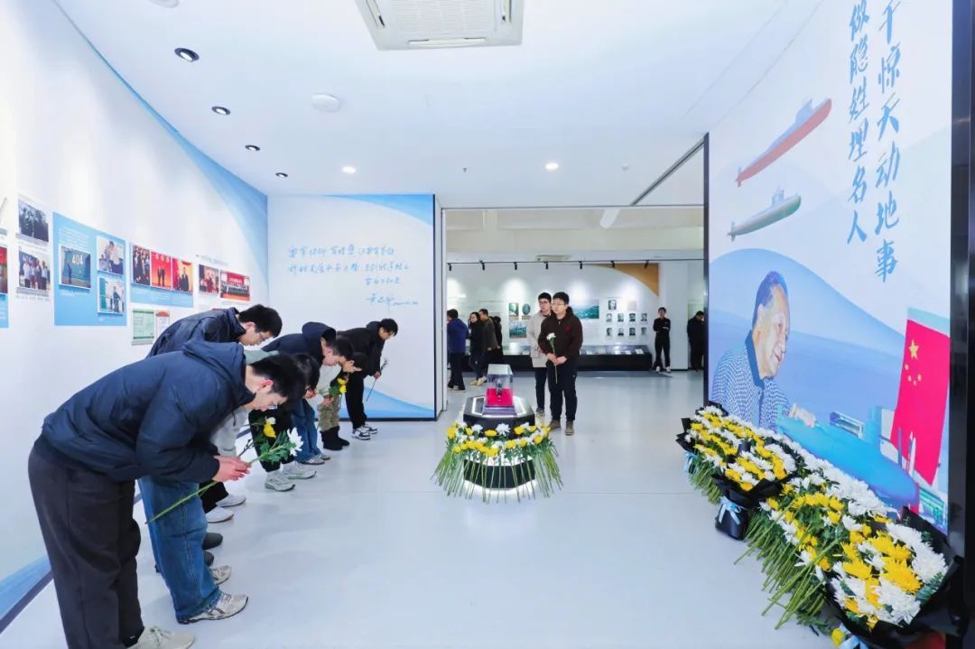 此前一天(2月7日),上海交大闵行校区木兰船建大楼前已经举行了一场追思活动。“我们永远怀念您,敬爱的黄旭华学长!”黑底白字的横幅传递着交大师生最诚挚的心声。船建大楼一楼大厅“为祖国‘深潜’——黄旭华院士专题展”前摆放着“长征一号”核潜艇模型。交大师生陆续前来献花缅怀。