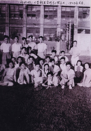 上海解放后,“山茶社”社员在交大校园内合影(前排卧者为黄旭华)图源:上海交大