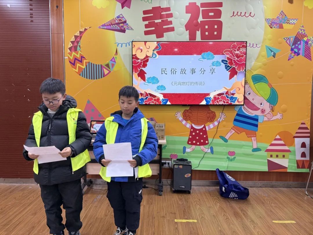 一进入幸福乐坊,大大小小的“玉盘”错落屋中,喜气洋洋的灯笼串联在一起,元宵氛围浓厚。活动伊始,小朋友们为大家讲述元宵故事《元宵燃灯的传说》。童声趣语,小朋友们将对元宵节的祝福寄托在故事中,让大家感受到美好的祝愿。
