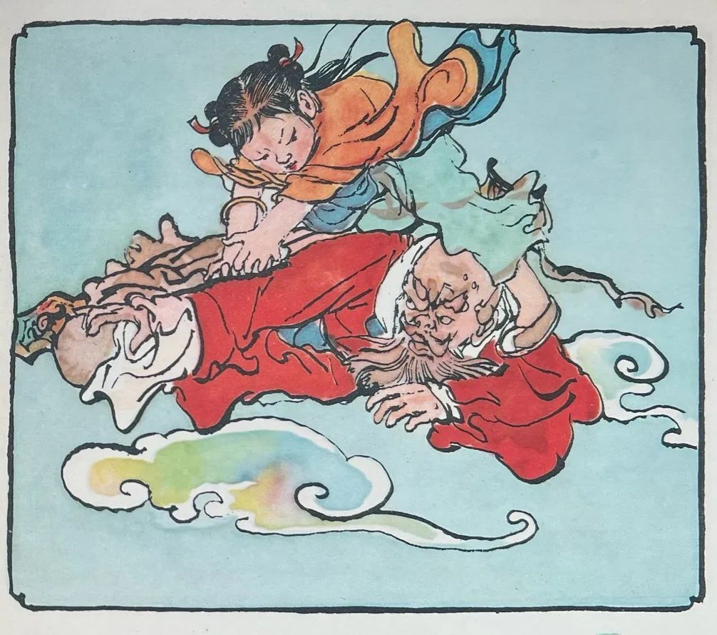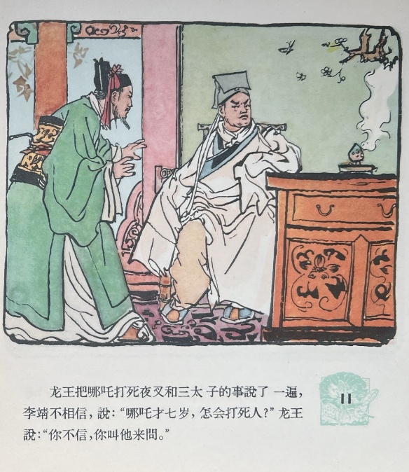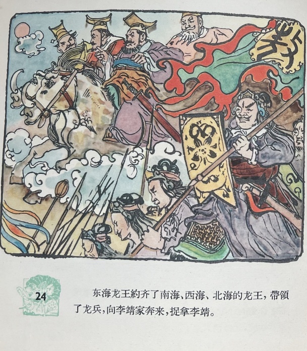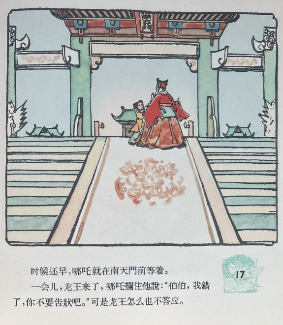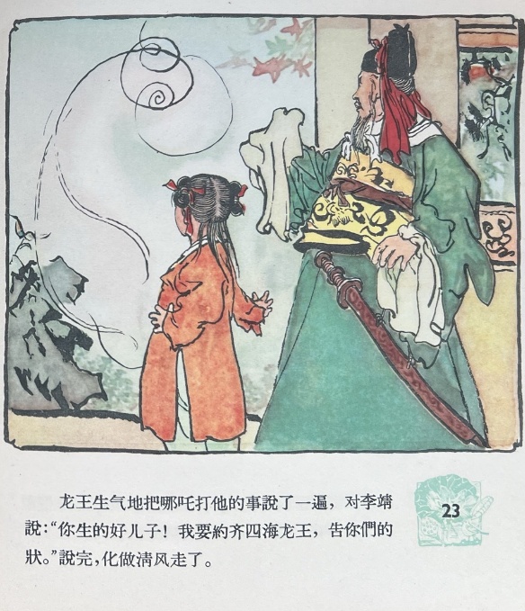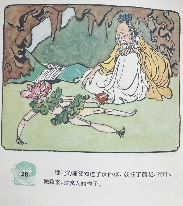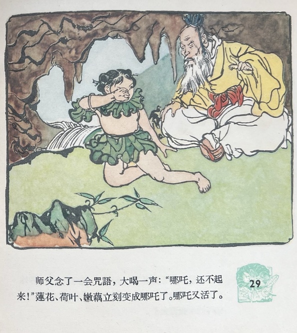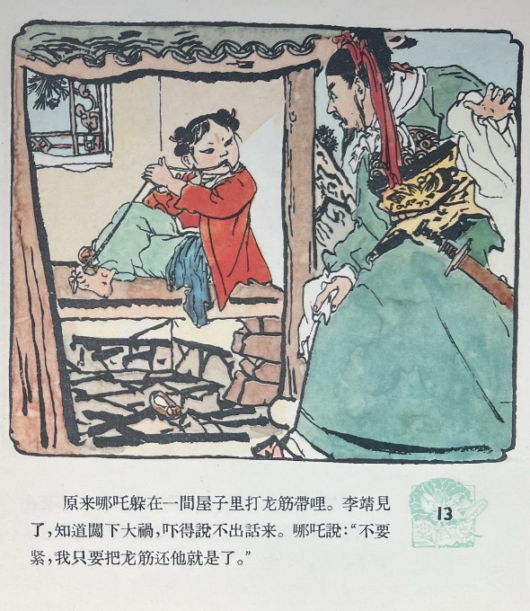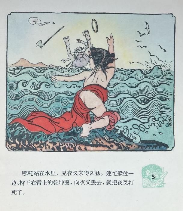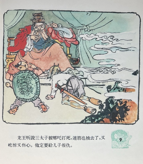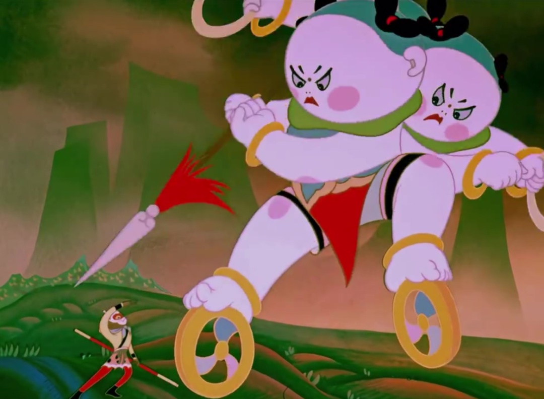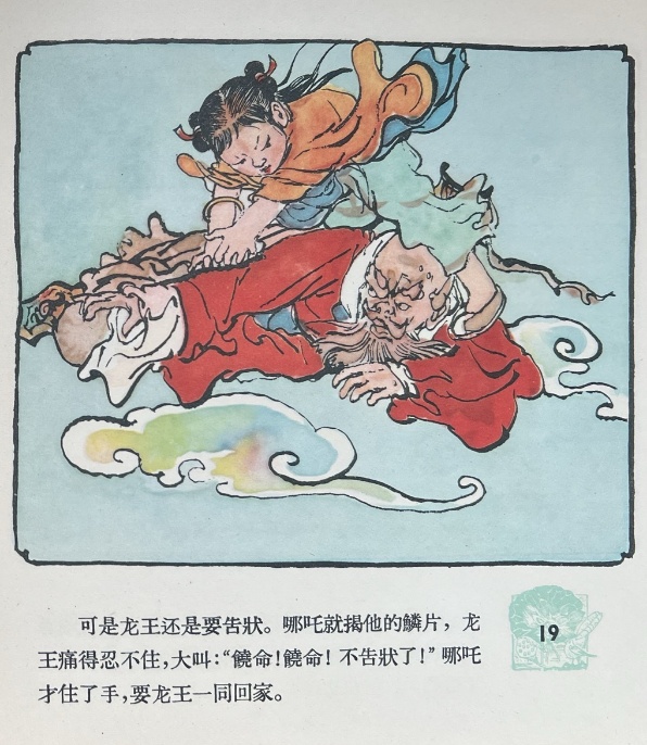 这版哪吒圆润可爱,拥有三头六臂,脚踏风火轮,手持火尖枪,臂挽混天绫,法力高强。