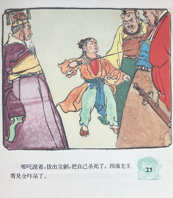 这版的哪吒一身白衣,根骨清秀,因见义勇为而与东海发生冲突,为了保护家人,自刎而死,后复活报仇。