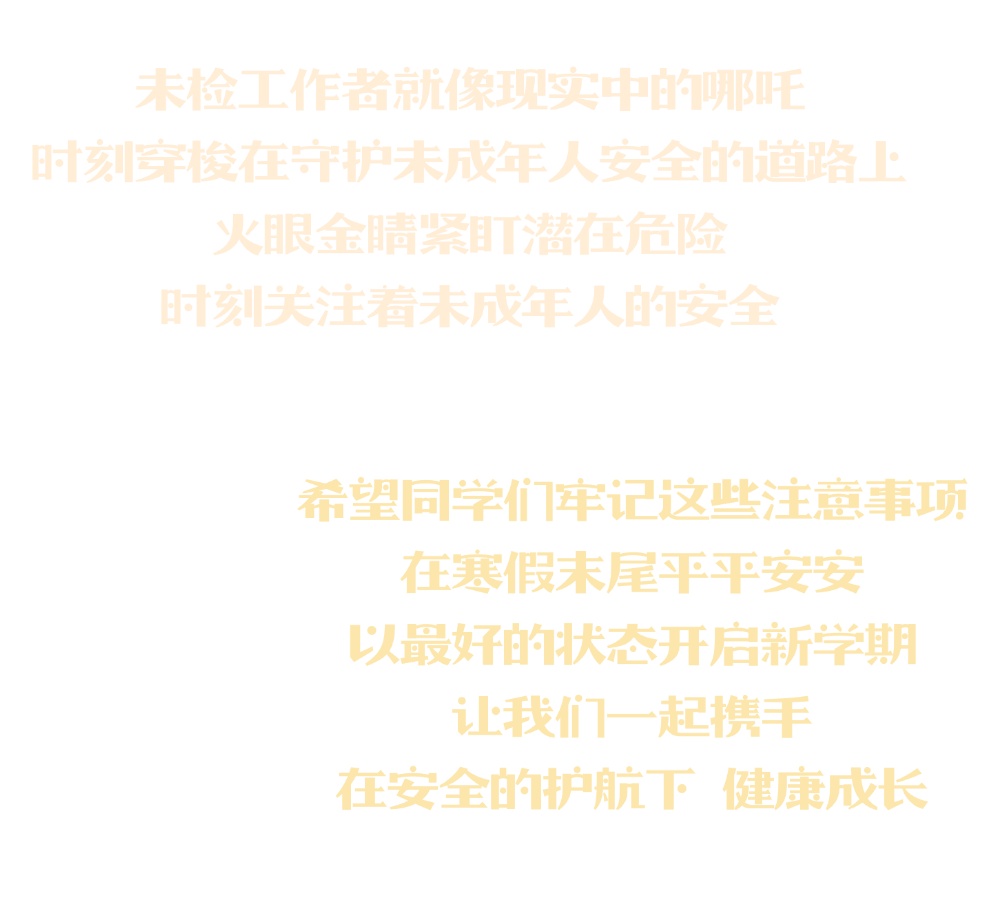 哪吒在面对各种诱惑和干扰时,始终保持清醒的头脑。寒假末尾,可能会有和小伙伴们的聚会,在聚会场合,不要接受陌生人递来的食物和饮料,小心里面可能藏着 “迷惑咒”,让你陷入危险。不参与任何形式的赌博活动,要知道这些不良行为就像黑暗的陷阱,一旦陷入就难以自拔。和朋友们开心相聚的同时,也要坚守住自己的原则,保护好自己。