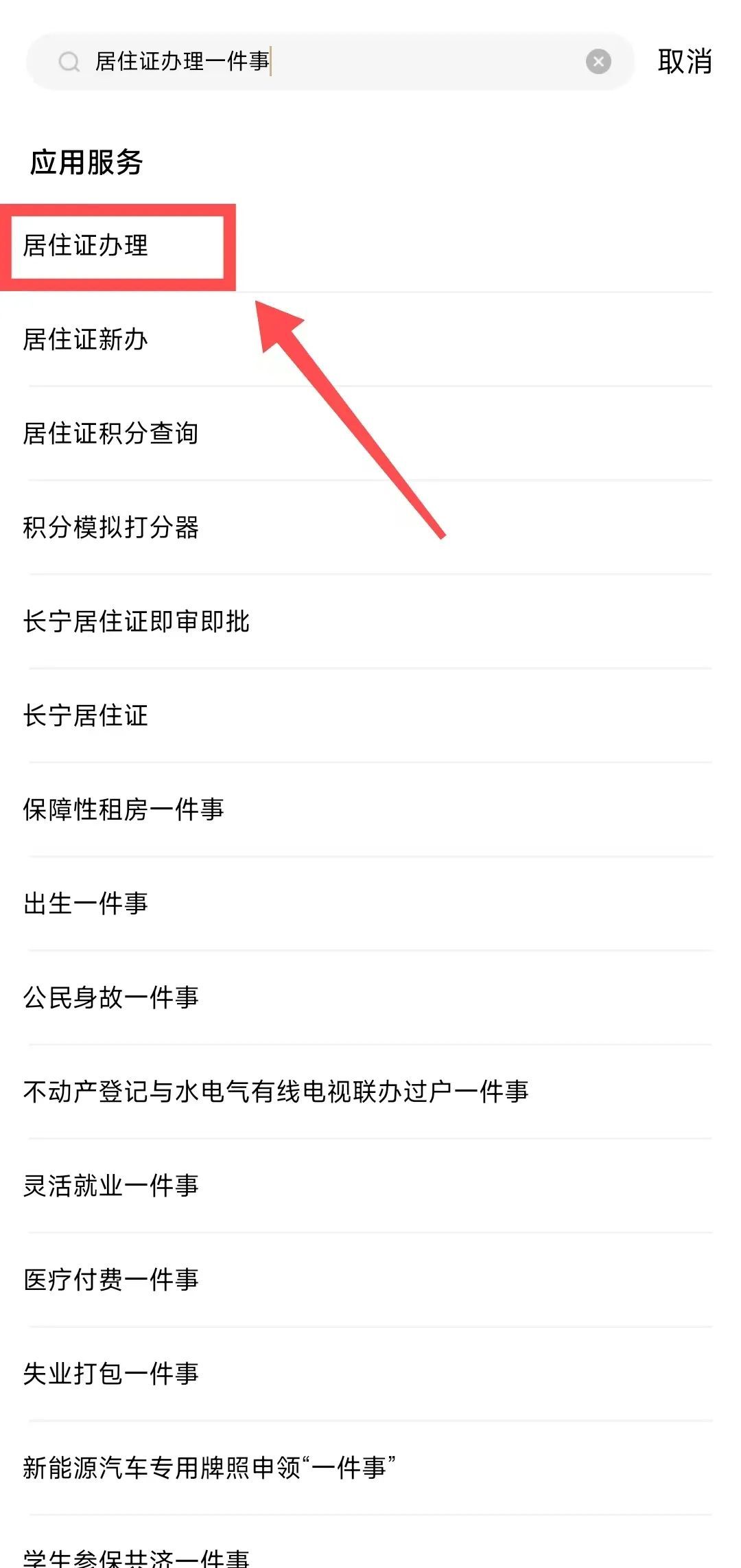 进入方式:进入“随申办市民云”app,直接搜索【居住证办理一件事】并点击进入服务。