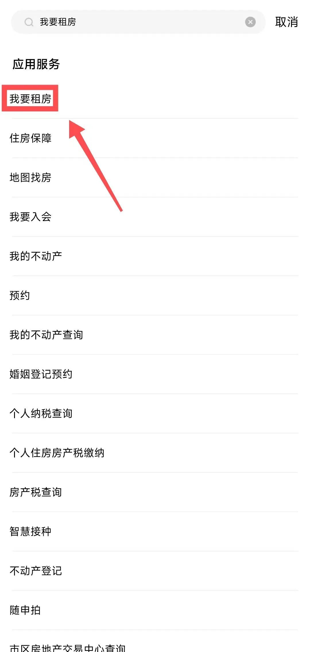 进入方式:进入“随申办市民云”app,直接搜索【我要租房】并点击进入服务。