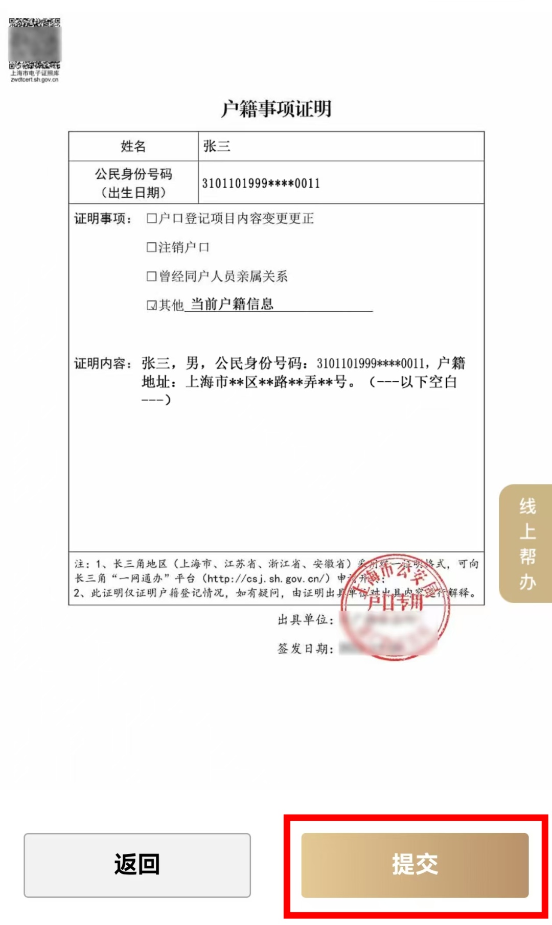 市公安局介绍,目前,市民在“随申办”app线上申请开具《户籍事项证明》,一般在1至3个工作日内出具;市民在派出所线下窗口申请开具证明的,做到当场出具、立等可取。