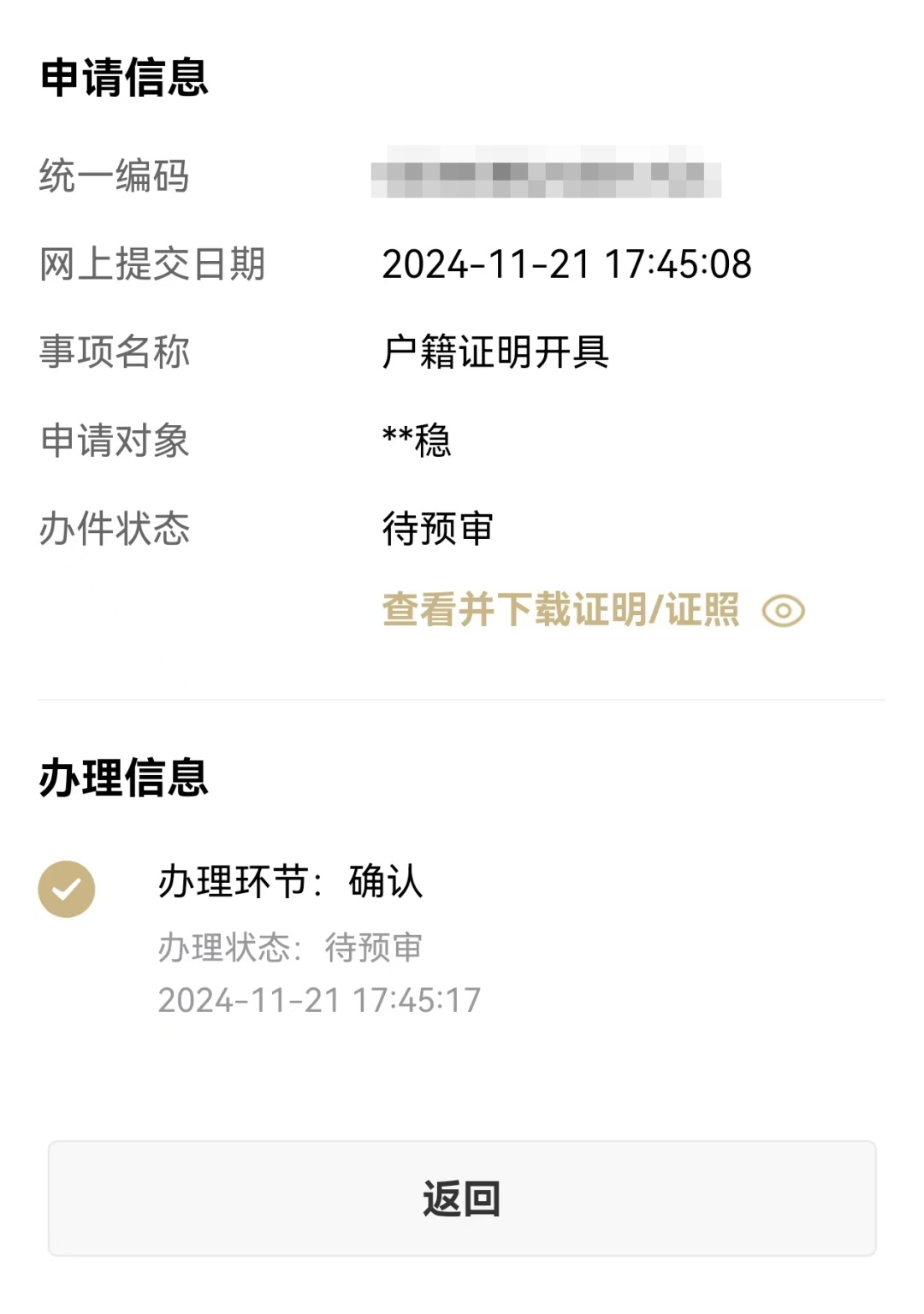 4.证明查看下载:申请人可在“随申办”app“我的免申即享”频道查询办理进度;并可在“我的免申即享”频道查看下载证明;或在“亮证”频道“添加证照”-“户籍证明”查看下载证明。