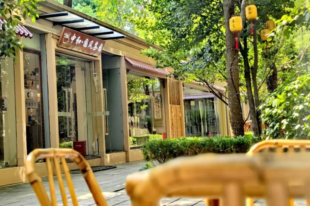 愚园路上的嘉春园区内,中和·国风茶园打造了一处品味茶香、体验传统文化的雅致空间,为这条充满烟火气的马路增添了几分静谧与优雅。