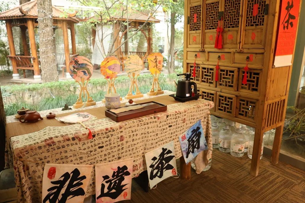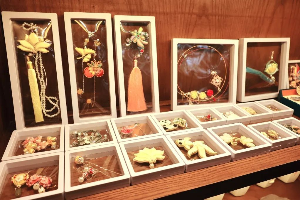 除了品茶,茶园还打造了别具特色的传统文化体验空间。店内陈列着非遗漆扇、非遗盘扣等手工作品,玉佩、手环等古风饰品,同时还展出了店主原创旗袍及汉服,全方位展现了中式美学和传统文化魅力。此外,茶园还不定期举办非遗体验活动,让顾客在品茶之余,能够亲身感受传统文化的魅力。