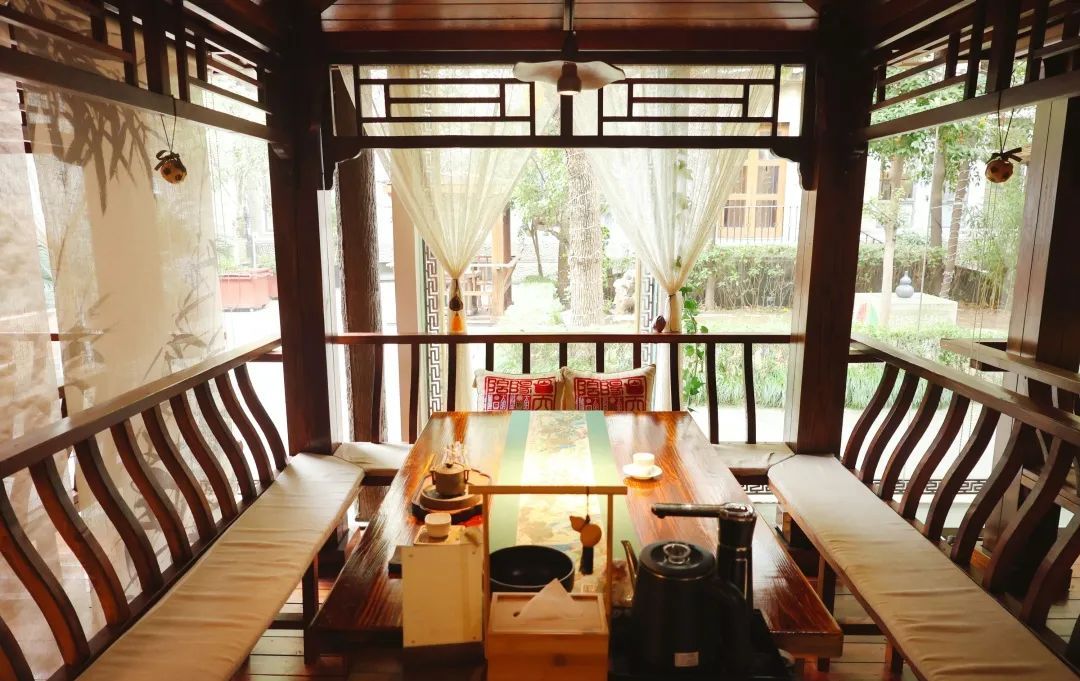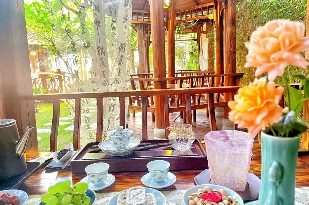 茶室外的露天庭院,又是另一番景致。顾客可在树下凉亭、竹椅处品茗聊天,或在圆石铺就的小道上悠闲散步,享受一段惬意时光。不妨约上几位好友,一同来到这片茶园,品味生活里的慢节奏吧。