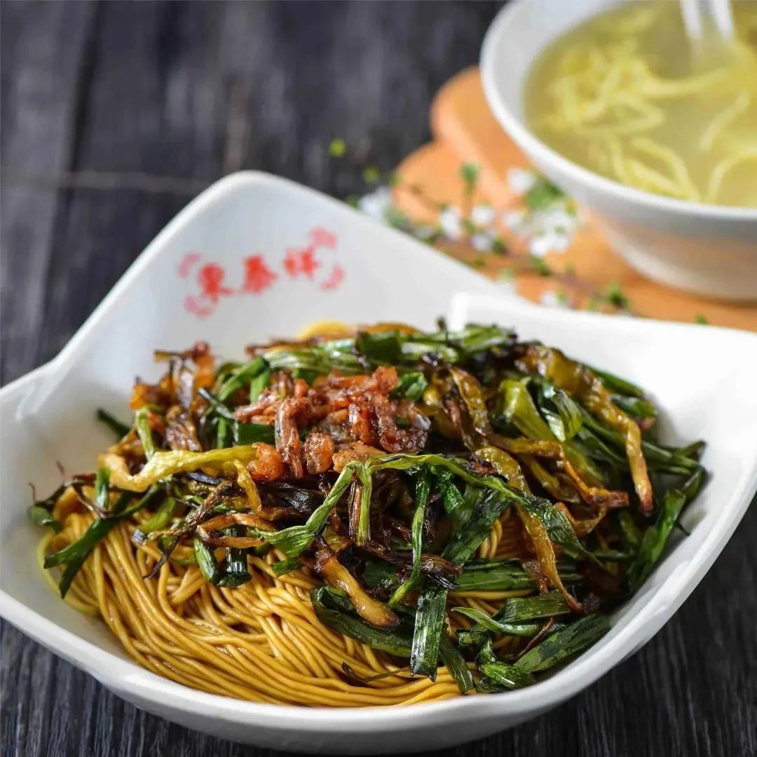 另外一款人气产品,开洋葱油拌面。在炸制葱的时候,葱叶、葱白和葱茎都要分开炸制,确保葱叶绿葱茎褐,分别达到各自的最佳颜色和口感。