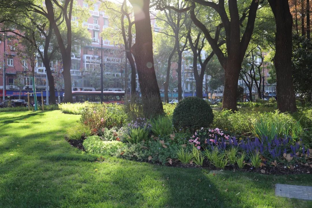 威海路黄陂北路公共绿地(森邻公园)总占地面积5470平方米。项目响应上海公园城市建设背景,结合“10分钟社区生活圈”规划,为实现黄浦区“标杆、高品质美丽街区”的建设目标,创建“公园城市创新示范区”,在区乃至市的中心位置创造一座“森邻花园”,让社区草长莺飞、充满鸟语花香。