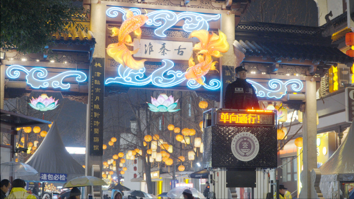 万盏灯火点亮上元夜,警“影”灯“影”相互交织,成为秦淮灯会中一道亮丽的风景线。