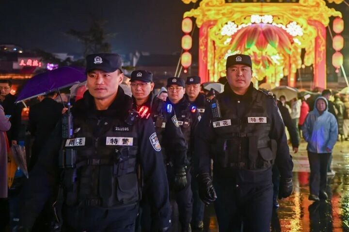 “灯会期间,遇到最多的警就是寻人警情,客流量大,人员走失在所难免。现在有‘火线寻人’新机制的加入,找人的时间缩短了不少,也让游客感受到满满的安全感。”灯火斑斓,徐东亮带着徒弟们坚守在灯会安保一线,夜空下,点缀大地的不仅仅是花灯,还有红蓝交闪的警灯。