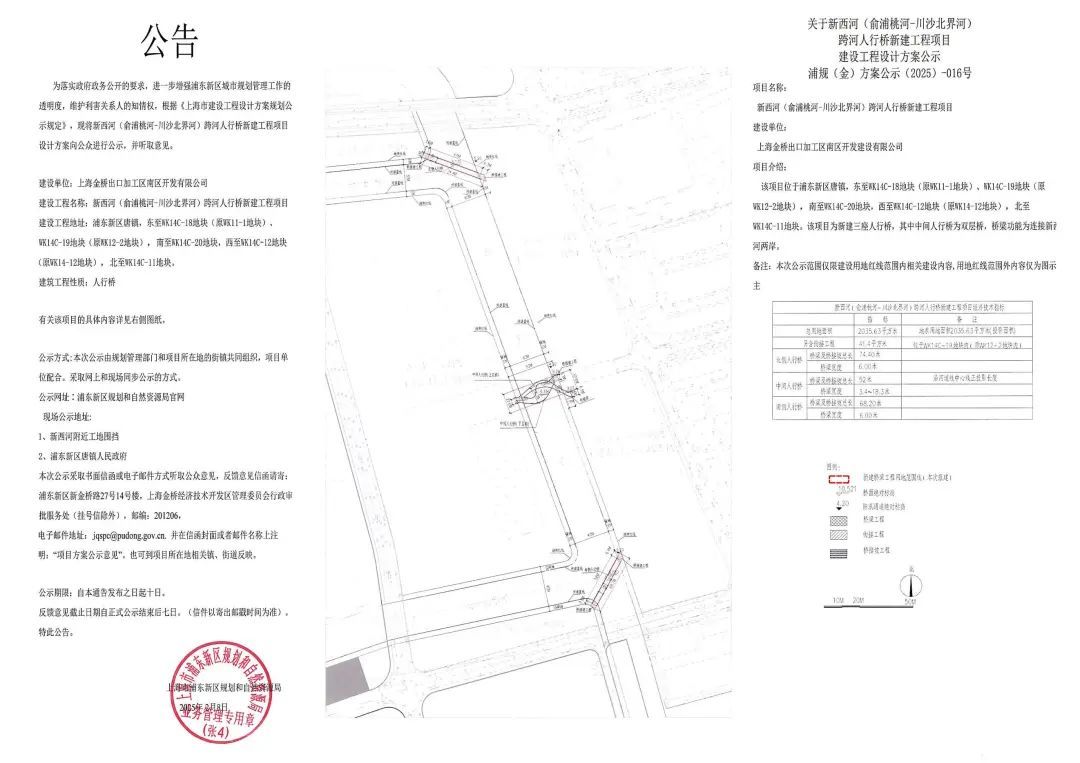 将新建新西河跨河人行桥