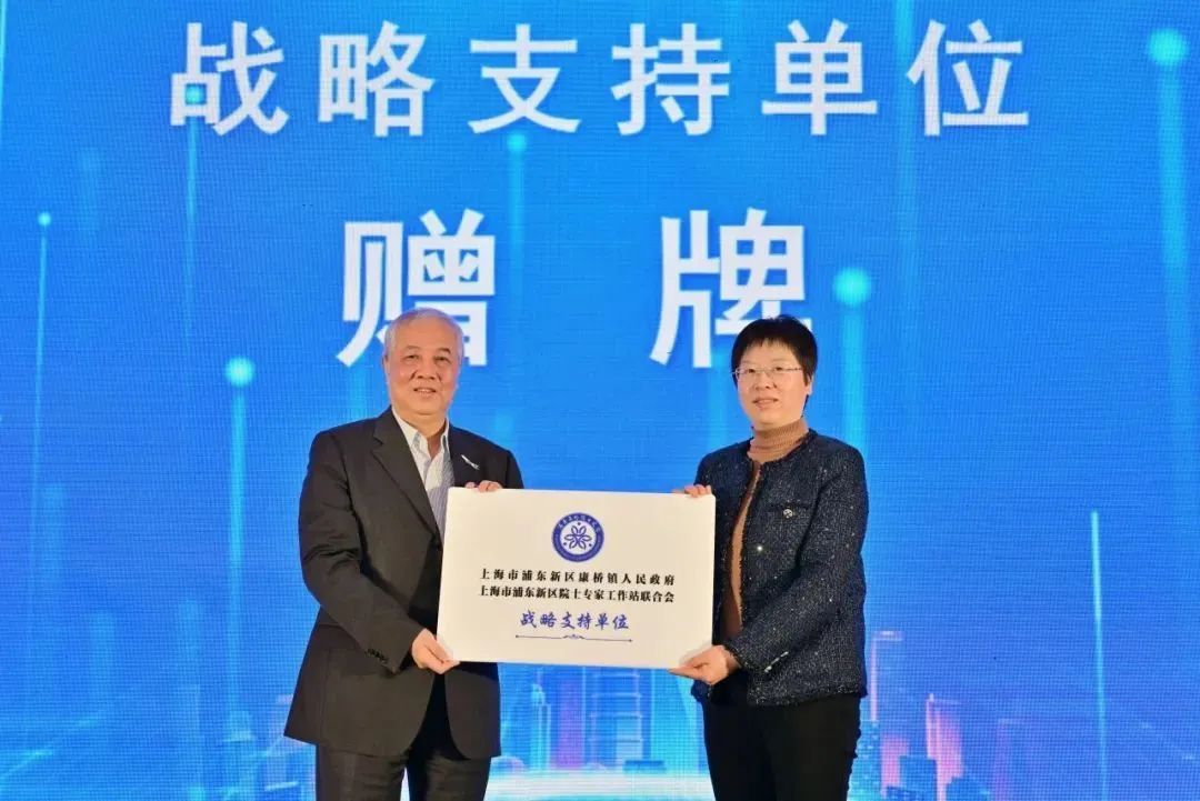 联合会与康桥镇人民政府达成双向赋能的深度战略合作共识。会上,中国工程院院士吴光辉,向上海市浦东新区康桥镇党委副书记、镇长赵永红赠“战略支持单位”牌。