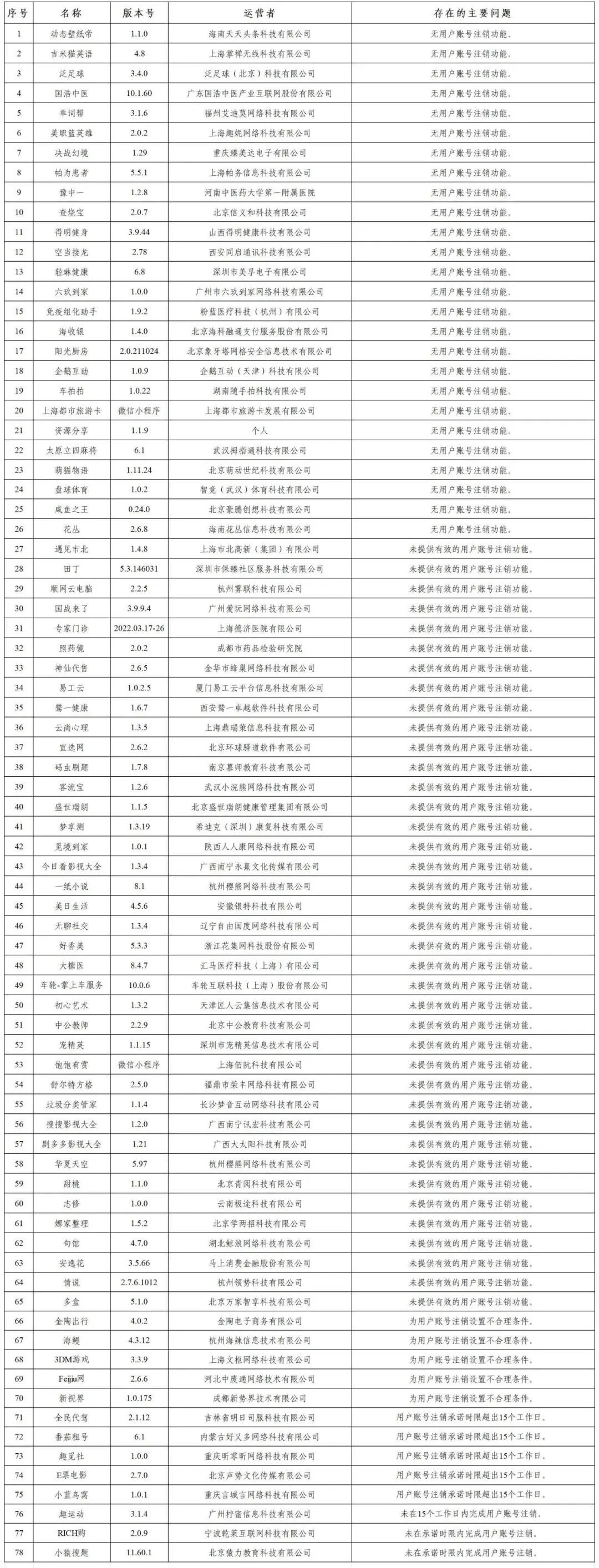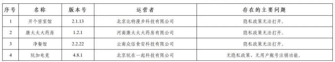 经查,“开个密室馆”等4款app存在未公开收集使用规则问题,违反《个人信息保护法》等法律法规,依法依规予以下架处置;“动态壁纸帝”等78款app存在未按法律规定提供删除或更正个人信息功能问题,违反《个人信息保护法》等法律法规,依法依规责令限期1个月完成整改,逾期未完成整改的,依法依规予以下架处置。