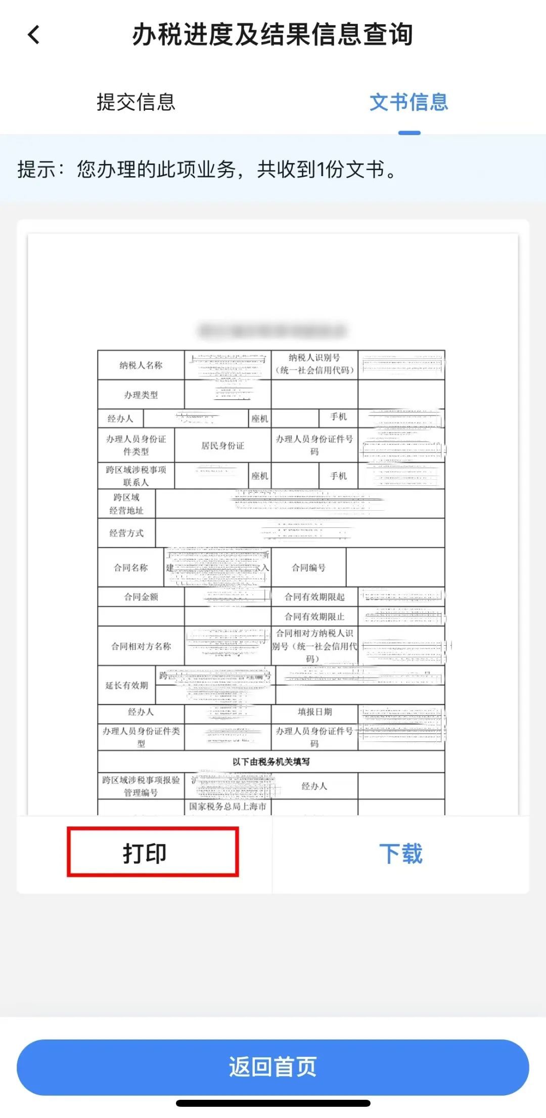 办理相关文书业务,可在【文书信息】查看文书内容,可选择打印或下载相关文书。