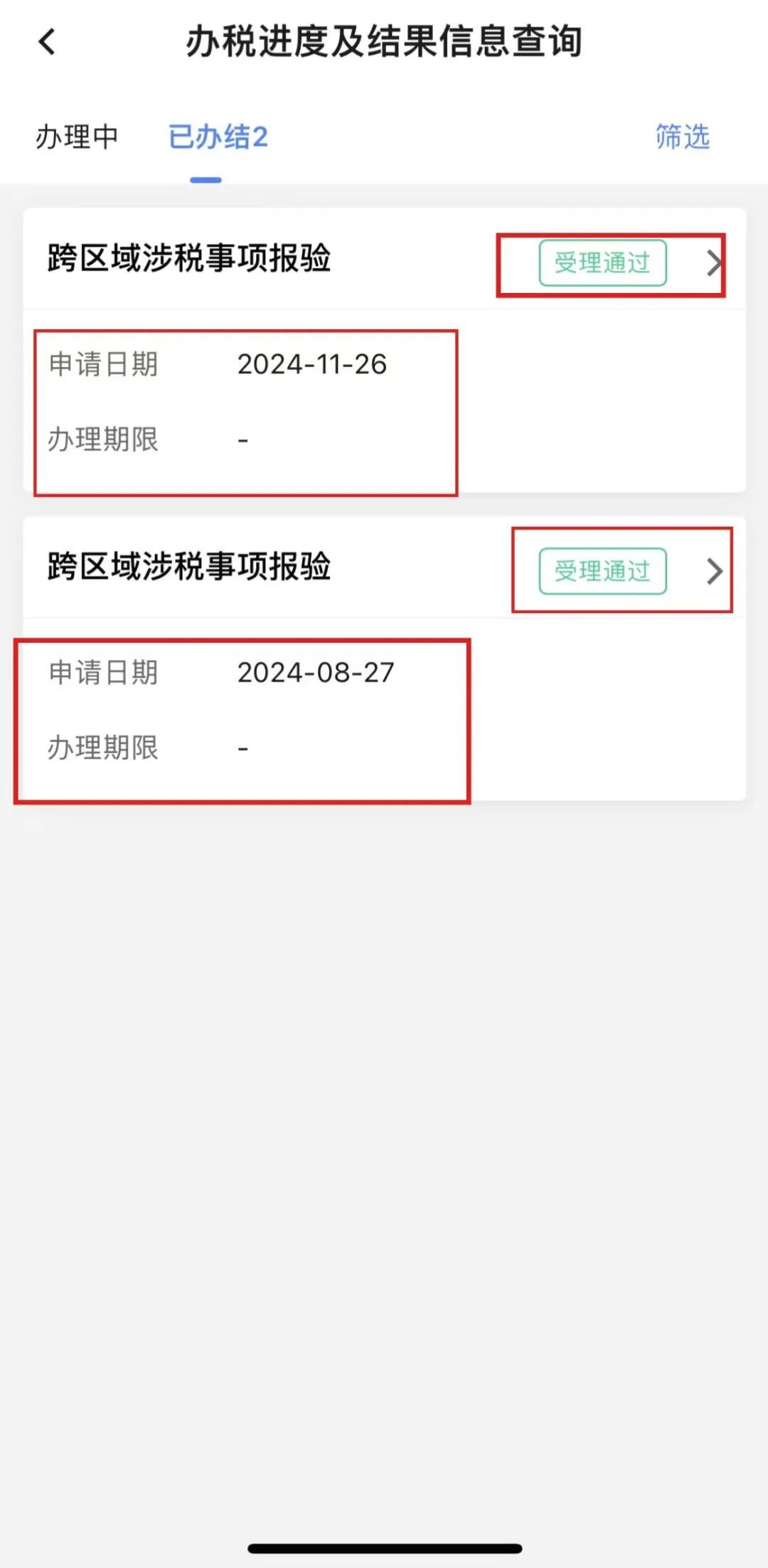 法人、财务负责人、办税人、涉税专业服务人员登录时,可查询所有申请办理的税务事项;