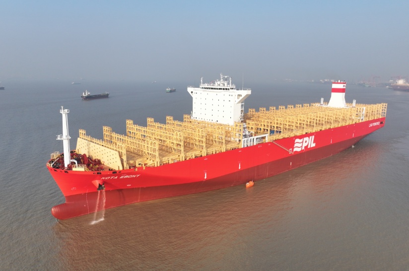 “kota ebony”轮是中船集团江南造船为太平船务建造的14000teu lng双燃料集装箱船系列船第三艘船,船长335米,型宽51米,是江南造船自主研发设计“鲲系列”大型集装箱船。该船采用全球新一代智能控制废气再循环(icer2.0)系统双燃料主机,可以通过特定算法自动跟踪并动态调整空气和燃气比例,和以往机型相比,气体模式下的甲烷逃逸可降低50%,减少25%的二氧化碳排放,是新型高效、绿色环保节能船型的典范。