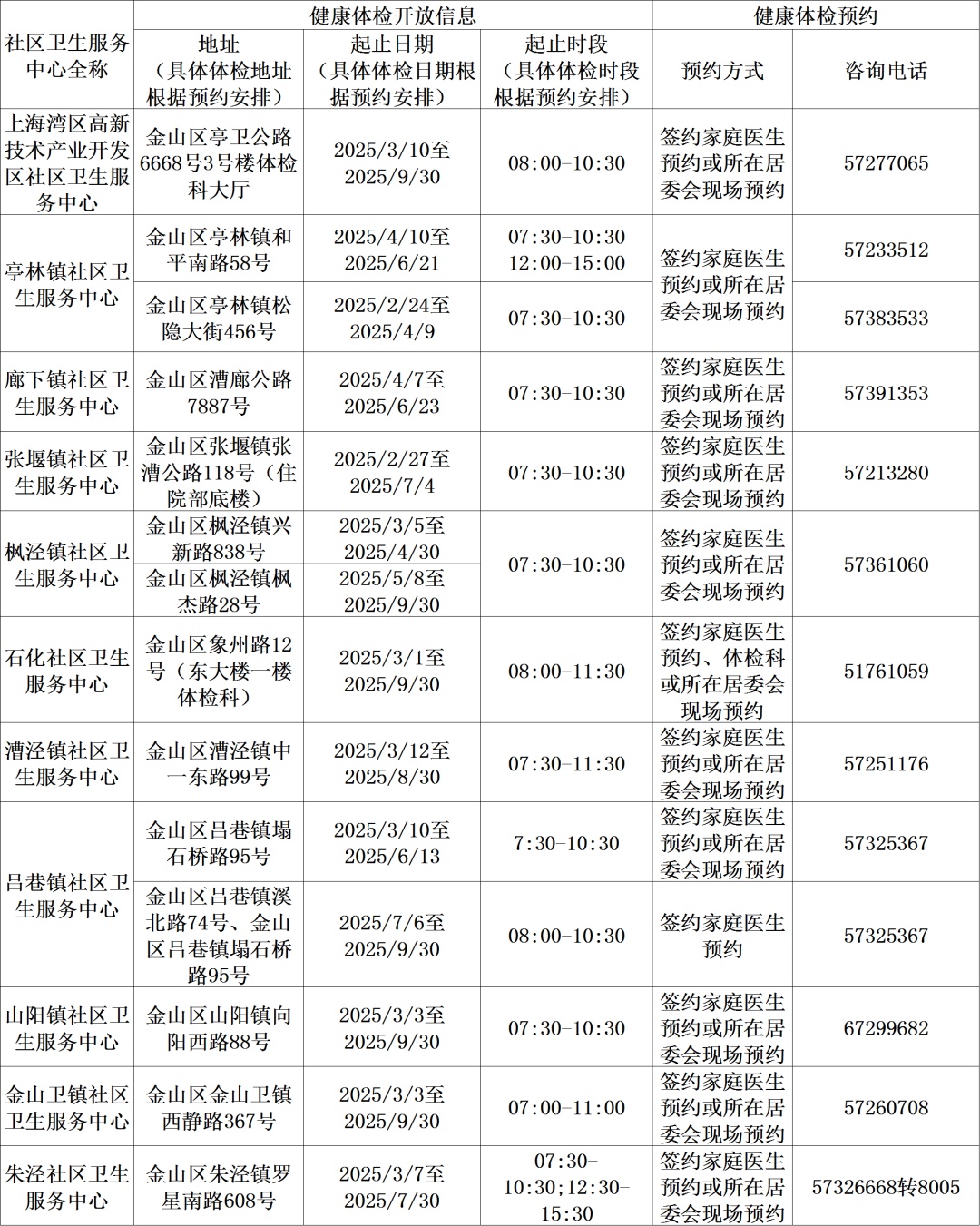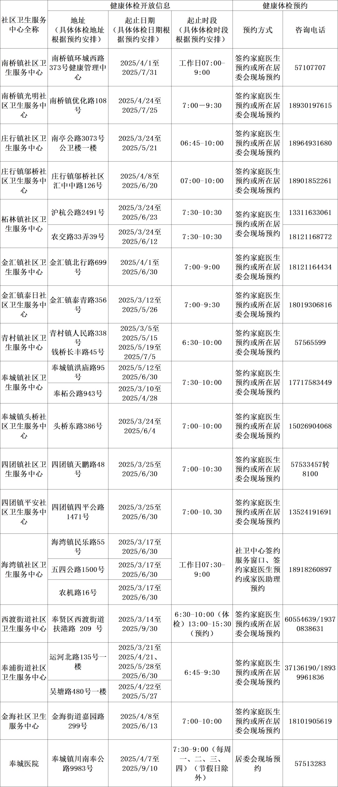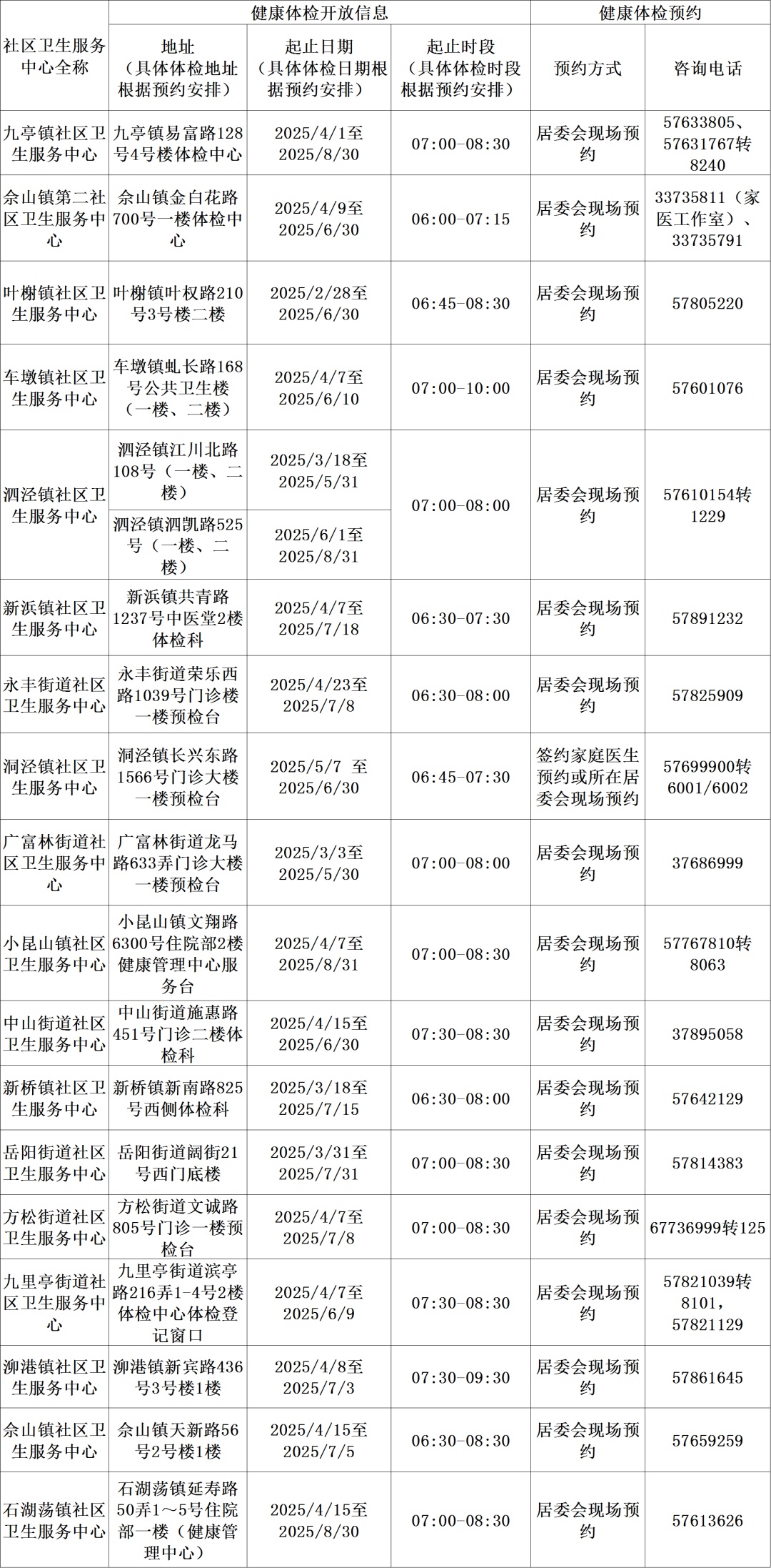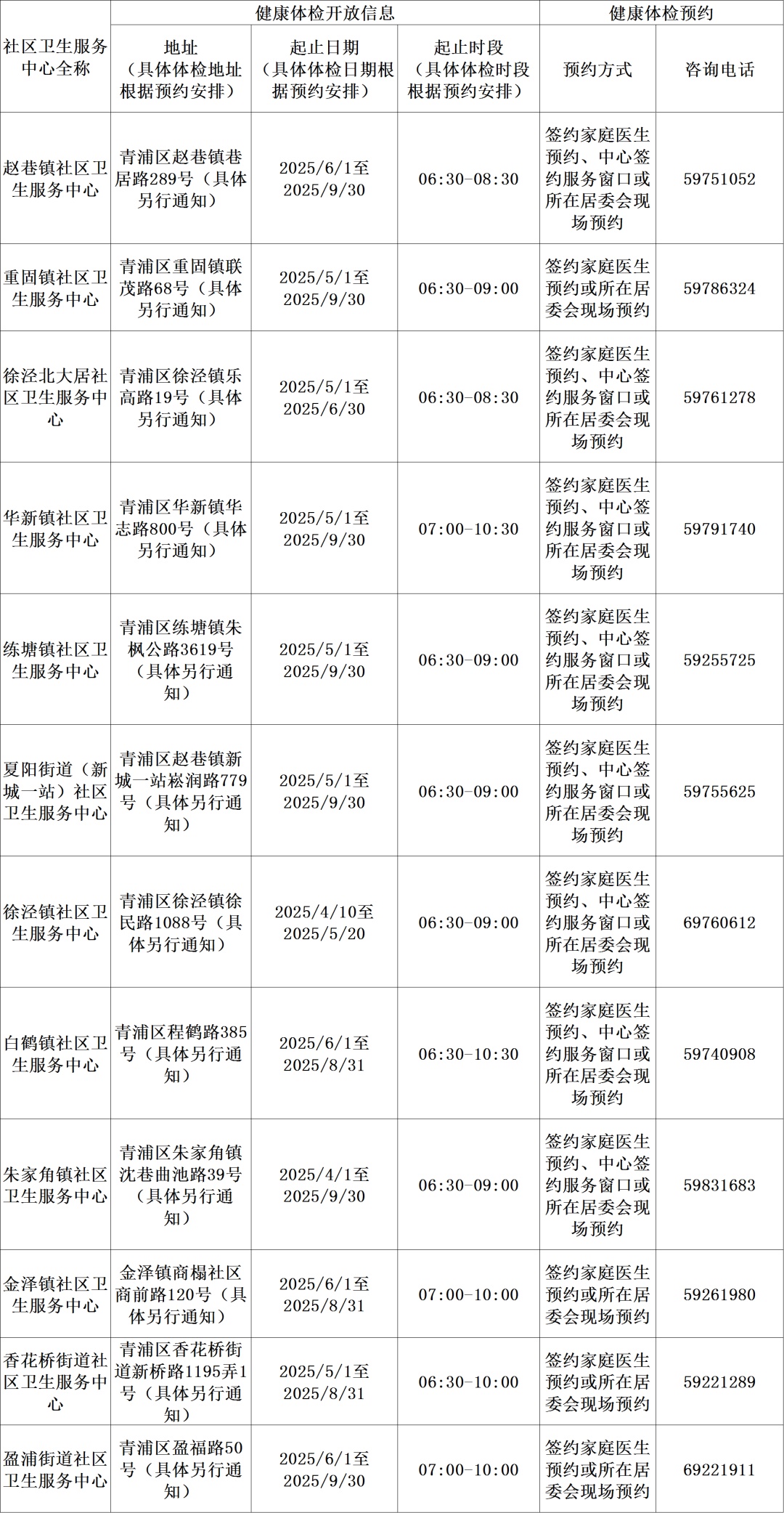 免费健康体检信息一览表(2025年)