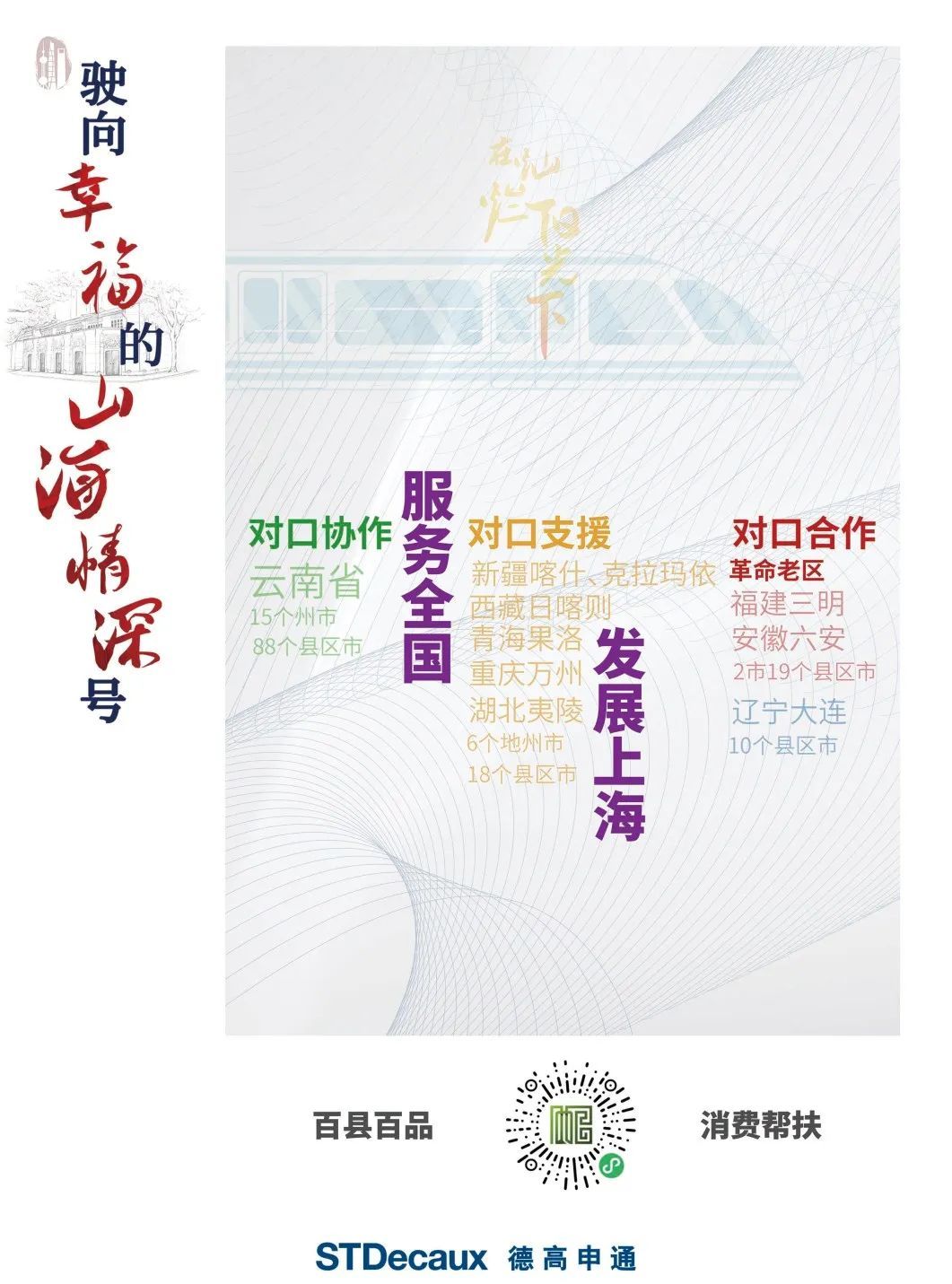 上海对口帮扶全国6个省区市、21个地州市的106个县区市。“驶向幸福的山海情深号”地铁列车展示活动由市政府合作交流办发起,联动国企、民企和社会公众共同参与,已经分批次陆续开展了近两年。