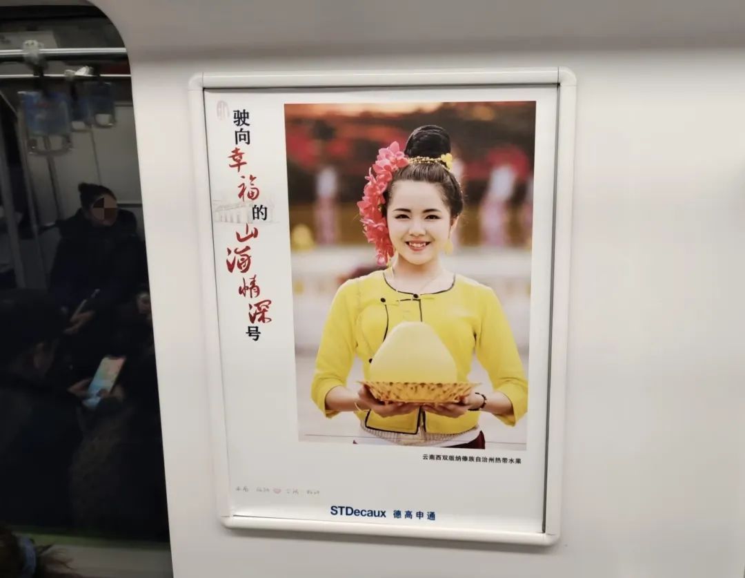 作为城市中最重要的交通工具之一,地铁是城市文化宣传的重要窗口。欢腾的泼水广场、壮美的乌蒙山脉、巍峨的珠穆朗玛峰……最近,这些来自松江对口帮扶工作和对口地区的自然与人文景观,就以主题海报的形式出现在上海地铁2号线“驶向幸福的山海情深号”专列的车厢中。