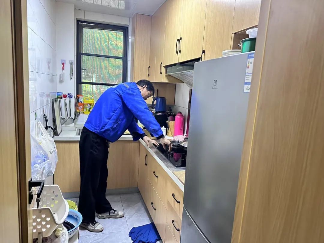 爱心送“蔬”的同时,“安全巡查小组”也同步上岗。“经租管家”志愿者、物业工作人员、居委会安全干部组成三方联动小队,挨家挨户敲开社区老人的家门。“李爷叔,这插线板可不能同时插这么多电器啊。”保安队长黄士强检查床头柜上的电线,安全干部则查看厨房的用火用电安全。