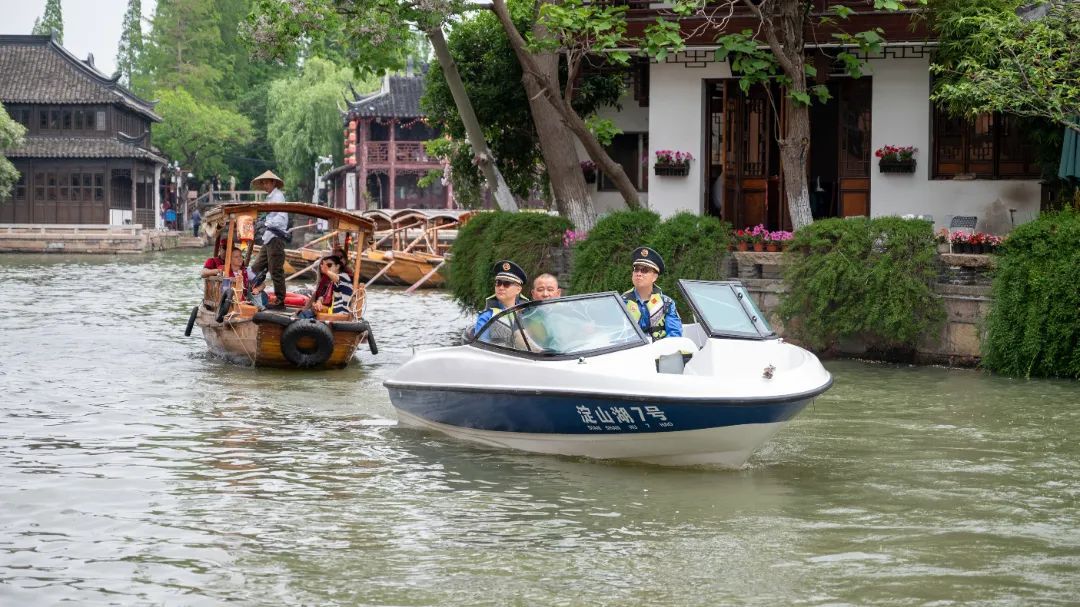 水岸联动,提升市容环境。活动紧扣普法对象特点,创新形式、丰富内容。执法队员驾驶执法船,沿着景区水域开展船巡普法,对河道沿线的商户和游客进行法治宣传。队员们通过船上的广播设备,向沿岸群众普及《上海市市容环境卫生管理条例》《河道管理条例》等法律法规,重点讲解了景区水域禁止非法捕捞、禁止向河道倾倒垃圾等规定。船巡过程中,队员们还与沿岸商户、群众互动,现场解答他们的疑问,提醒大家共同维护景区水域环境。