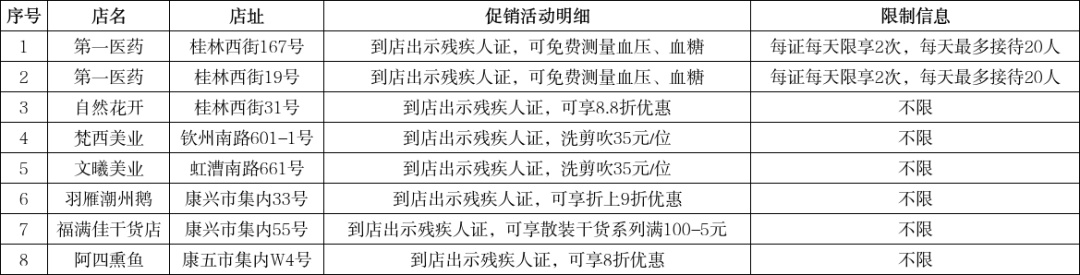 在街区党支部的号召下,商户积极参与并营造“全国助残日”的良好氛围,计划在2025年5月17日至5月30日期间开展惠残活动:社区残疾人到店出示《中国残疾人证》即可享受一系列优惠。