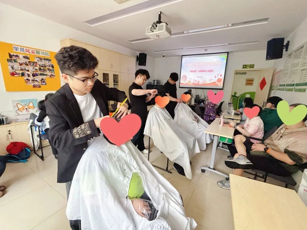 在免费理发现场,理发师志愿者热情招呼着阳光家园学员们入座,他们仔细地为学员们围上理发巾,梳理着头发,根据学员们的不同需求精心设计发型。不一会儿,一个个精神抖擞的新发型便呈现在众人眼前。学员们看着镜子里焕然一新的自己,流露出满意的笑容。