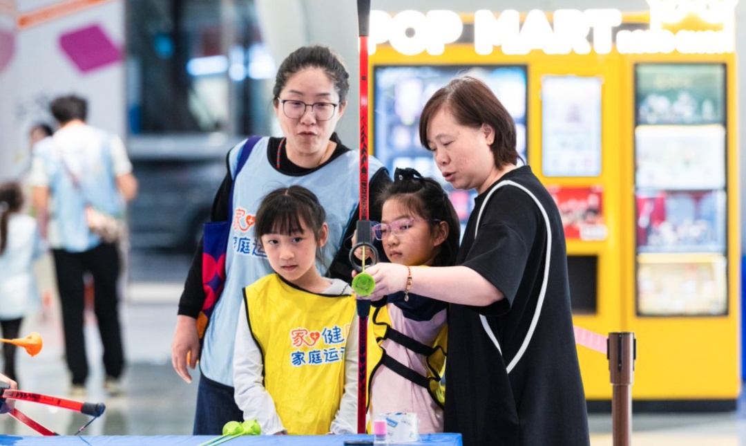 “加油!加油!”“厉害,儿子你是最棒的!”……伴随着加油声和欢笑声,5月18日,2025年全国“奔跑吧·少年”儿童青少年主题健身活动(上海会场)——“家+健康”家庭运动会在龙湖上海虹桥天街商场火热举行,活动以“家+健康”家庭运动会为主题,共吸引250组家庭参加。
