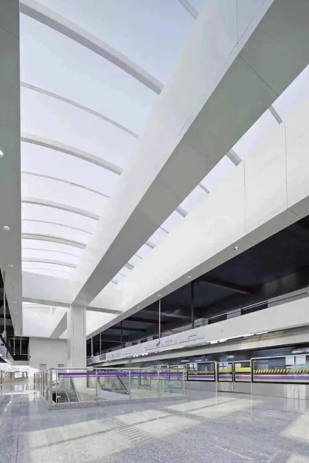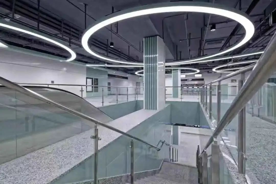 5号线车站的建设与装修,遵循可持续发展“简而美”的绿色设计原则,利用最少的装饰材料突显建筑的美感。通过加强照明和灯具的设计,来增加空间的层次和韵律。各个车站各有特色,让我们通过图片一起来看看吧~