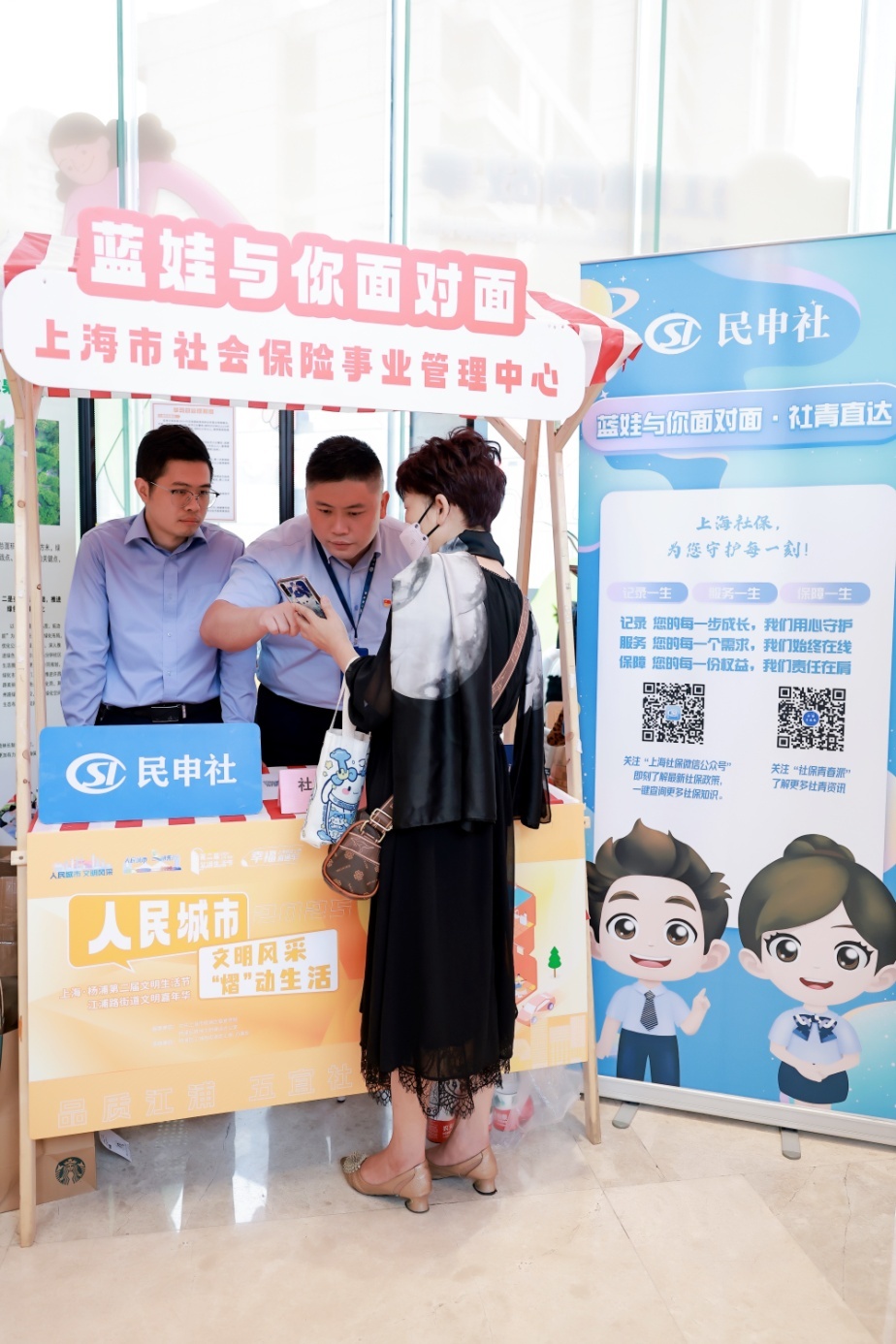 据了解,上海市社保中心以打造“民申社”经办服务品牌为引领,通过开展“蓝娃与你面对面”主题宣传活动,助力更多的市民群众在家门口享受到“便捷、透明、亲和”的社保服务,让文明服务浸润城市的每一个角落。