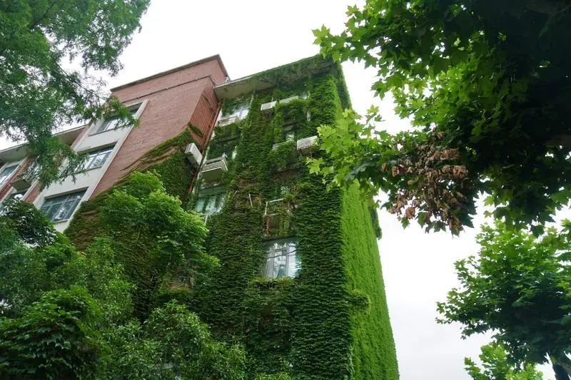 在经历了黄梅天多日的雨水灌溉后,爬山虎的长势惊人。它们的存在好似给房子套上了一层翡翠色的衣裳。