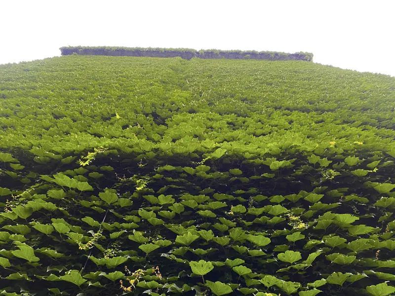 蜿蜒的藤蔓在盛夏中舒展着翠绿的掌形叶子,一阵微风拂过,还会激起灵动的碧涛。在这炎夏的高温天中,多少能带来一丝沁人心脾的凉爽。