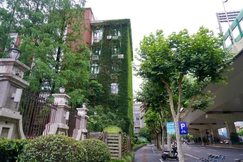 去年永嘉路和太原路的交叉处有一栋“网绿”大楼突然在网上爆火。