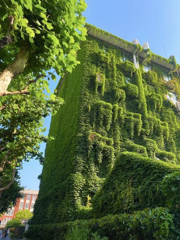 爬山虎的观赏性很强,在有阳光的天气里很出片。时常有路人驻足拍照。在兼具美观的同时,这些爬藤植物的存在对建筑也有某种意义上的保护。