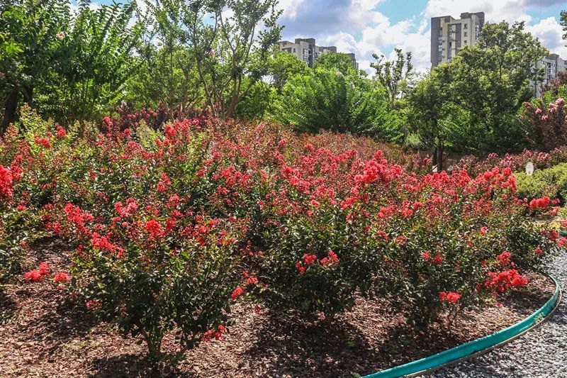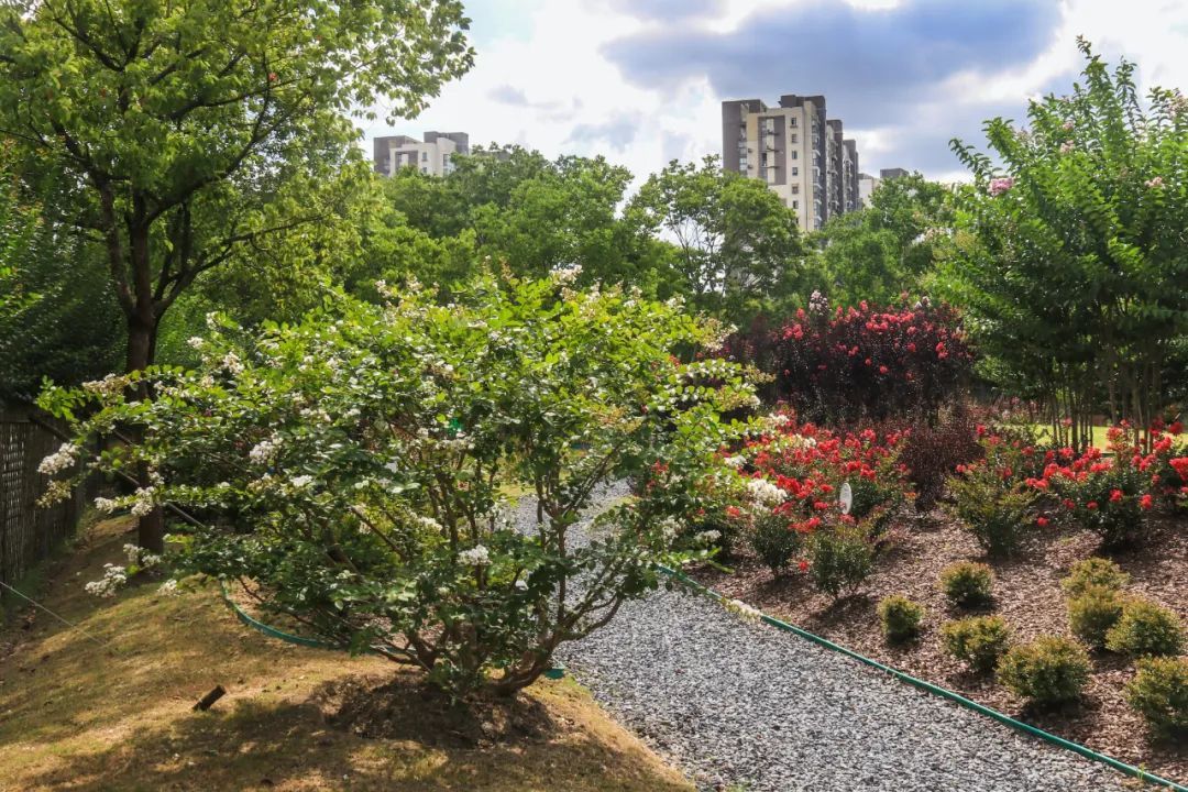 2023年,上海市绿化管理指导站依托紫薇新优品种推广课题,在嘉定区园林绿化管理所的大力支持下,建设完成了紫薇园。该园建成后,通过市、区、企联动做好日常养护工作,确保紫薇既栽得对,又养得好,发挥最大的观赏价值和生态效益。