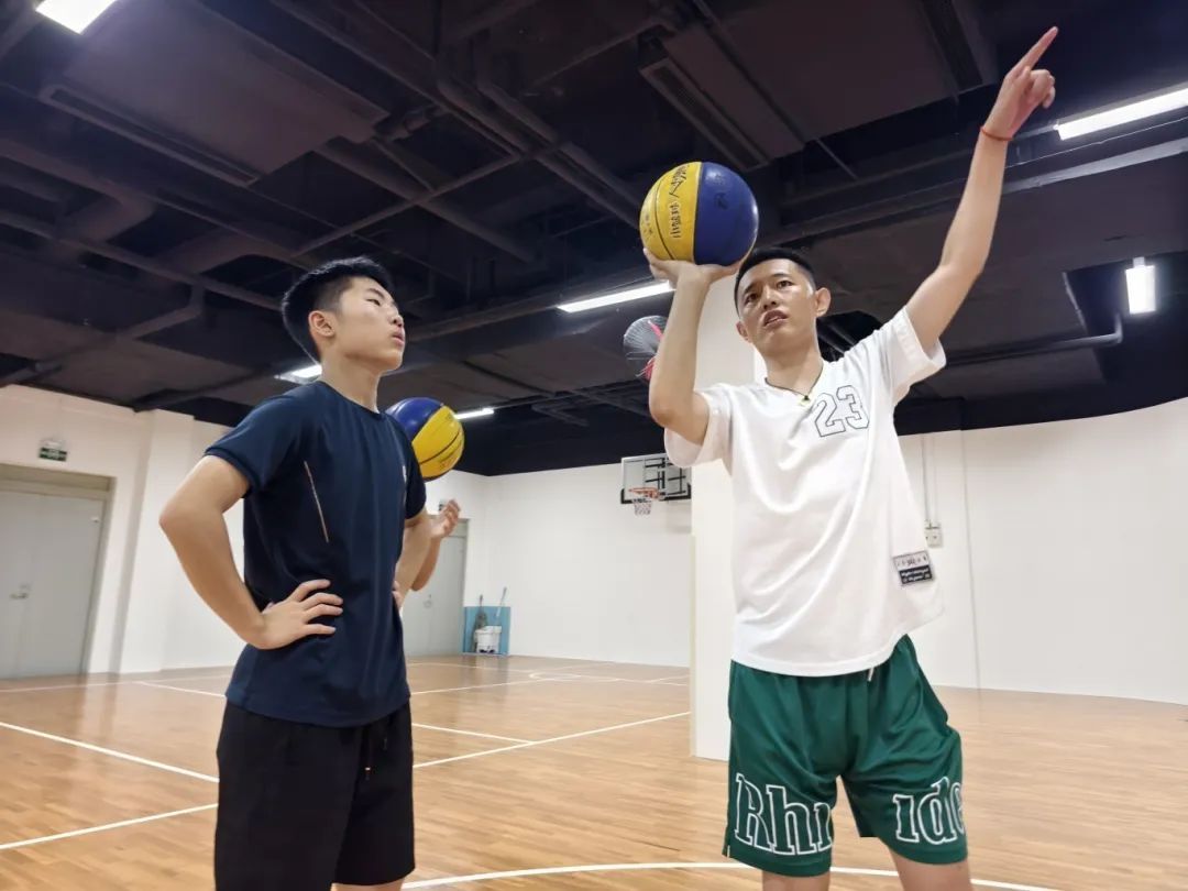 暑期篮球训练营学员沈同学表示,自己没啥基础,就希望到了开学的时候能把篮球练好。