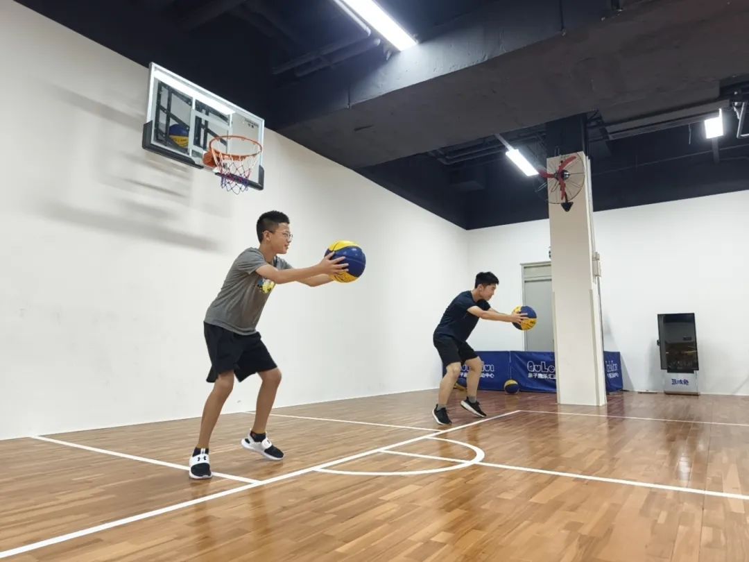 下午,百联吴淞商场二楼新开辟的一个“迷你篮球馆”里迎来了几个零基础的七年级男生。今年暑假开始后,他们决定尝试去参加一个篮球训练营,这个家门口的迷你篮球馆就成为他们试水的首选。在这里,年轻的专业教练并没有因为他们的零基础而降低对他们的要求和期望。