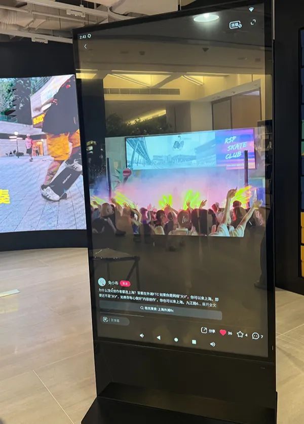 “外滩ftc”一楼大厅内,立式大屏幕显示着“小红书”内容页面。本文图片均为 澎湃新闻记者 李菁 图