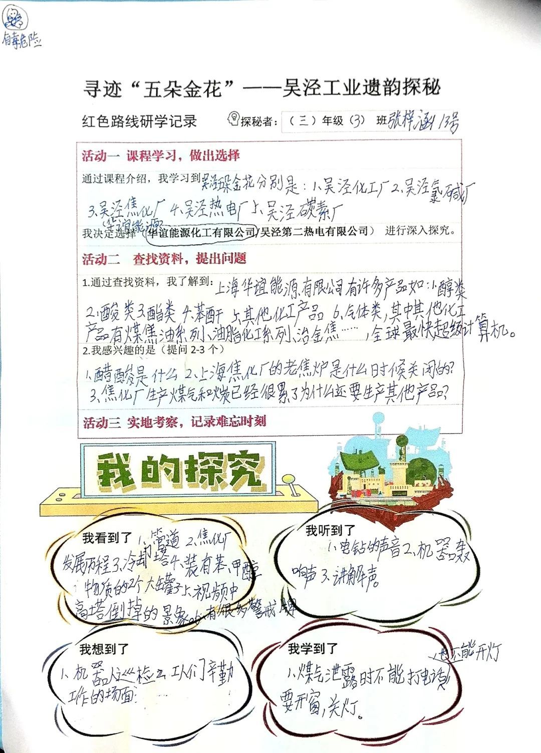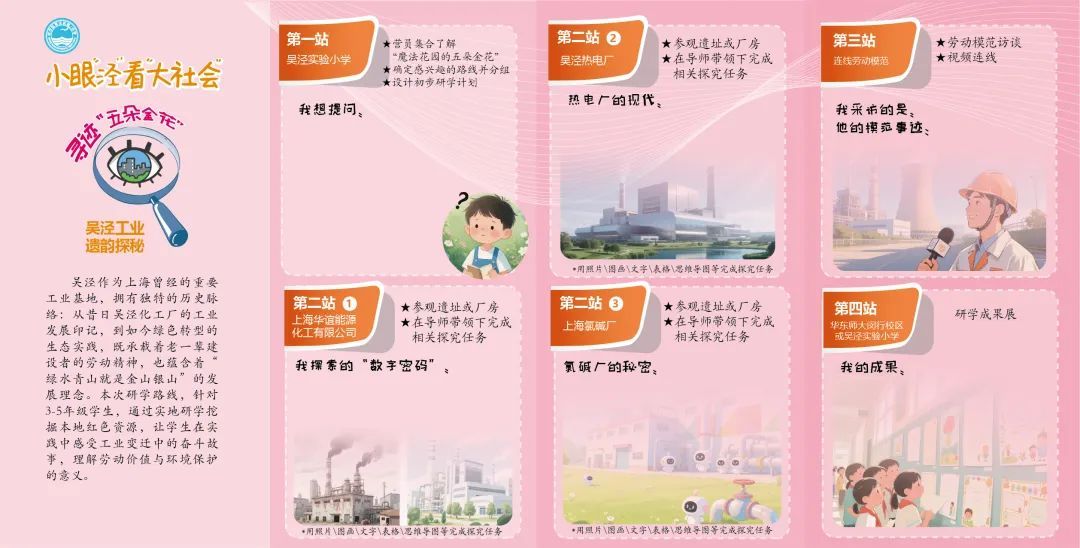 特别的是,不但吴泾实验小学的孩子们可以拿着这本手册进行实地探访,所有吴泾镇学区的学生都可以共享这份学习资源。