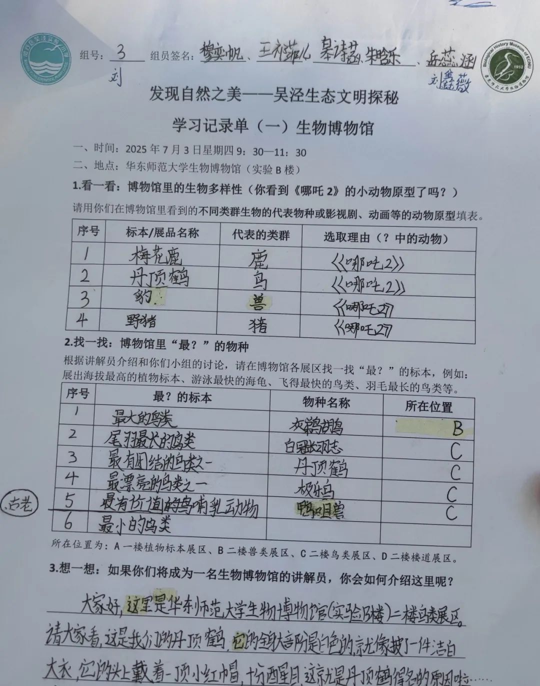 除了孩子们最为期待的“公园奇妙夜”,研学团还走进了华东师范大学生物博物馆进行深入参观,了解了生物多样性与生态文明建设,还在高校教师的带领下走进实验室体验了标本的制作过程。