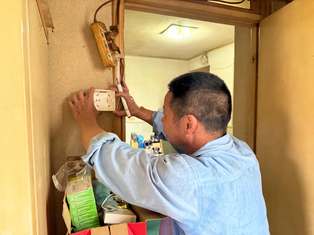 79岁的袁师傅独居多年,今年夏天不慎摔伤,生活一度陷入困境。微网格社工得知后,第一时间帮他申请长护险,并每日上门探望,发现其家中线路老旧后,又主动联系物业上门更换电线、安装新插座,还细心讲解用电常识。